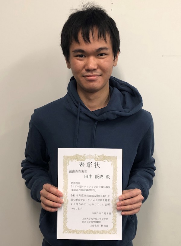 優秀発表賞を受賞することができとても嬉しいです。研究が上手くいかないときもありましたが、結果を出すことができたのは丁寧に指導してくださった安田先生や、研究室メンバーの方々の助言やサポートのおかげだと思っています。