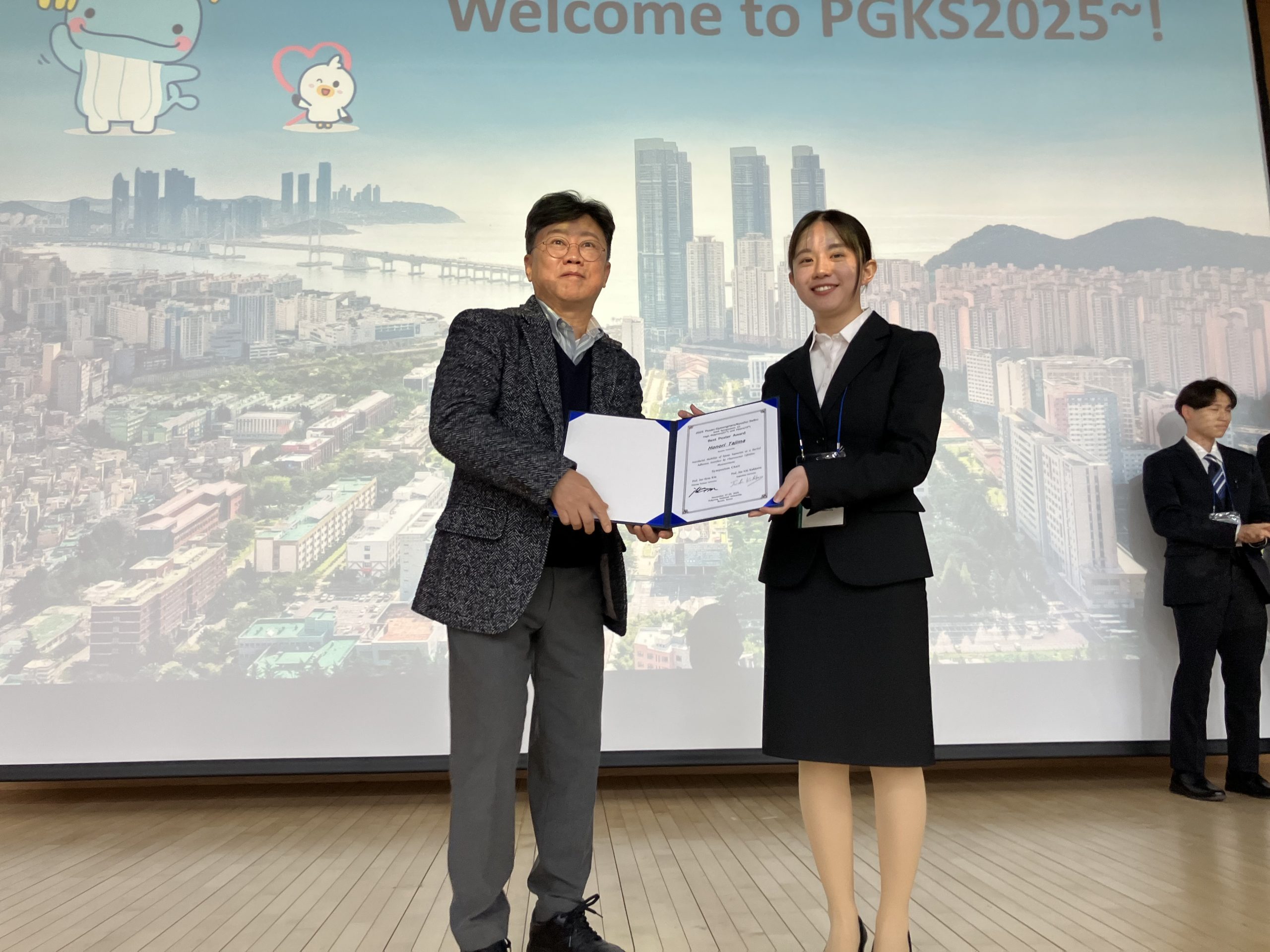 田島穂乃里さん(M2)が2025 Pusan-Gyeongnam/Kyushu-Seibu Joint Symposium on High Polymers(21st) and Fibers(19th)(PGKS2025)にて、Best Poster Awardを受賞しました。