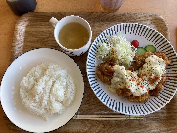 写真は学会参加者の集合写真と開催地である宮崎市で食べたチキン南蛮です。チキン南蛮は美味しく、楽しい思い出の一つになりました。